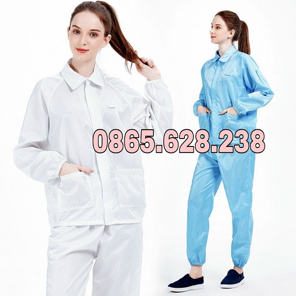 Quần áo phòng sạch chống tĩnh điện Quần áo phòng sạch rời với nhiều quy cách may khác nhau, hàng may sẵn giao ngay các màu xanh/trắng.vải chống tĩnh điện ( sọc dọc hoặc sọc caro vuông) là các sợi carbon.vải chống bám bụi tốt, dễ vệ sinh chống thấm nước tương đối .Sử dụng rộng rãi trong các lĩnh vực sản xuất như gia công bo mạch-linh kiện điện tử, sản xuất yêu cầu